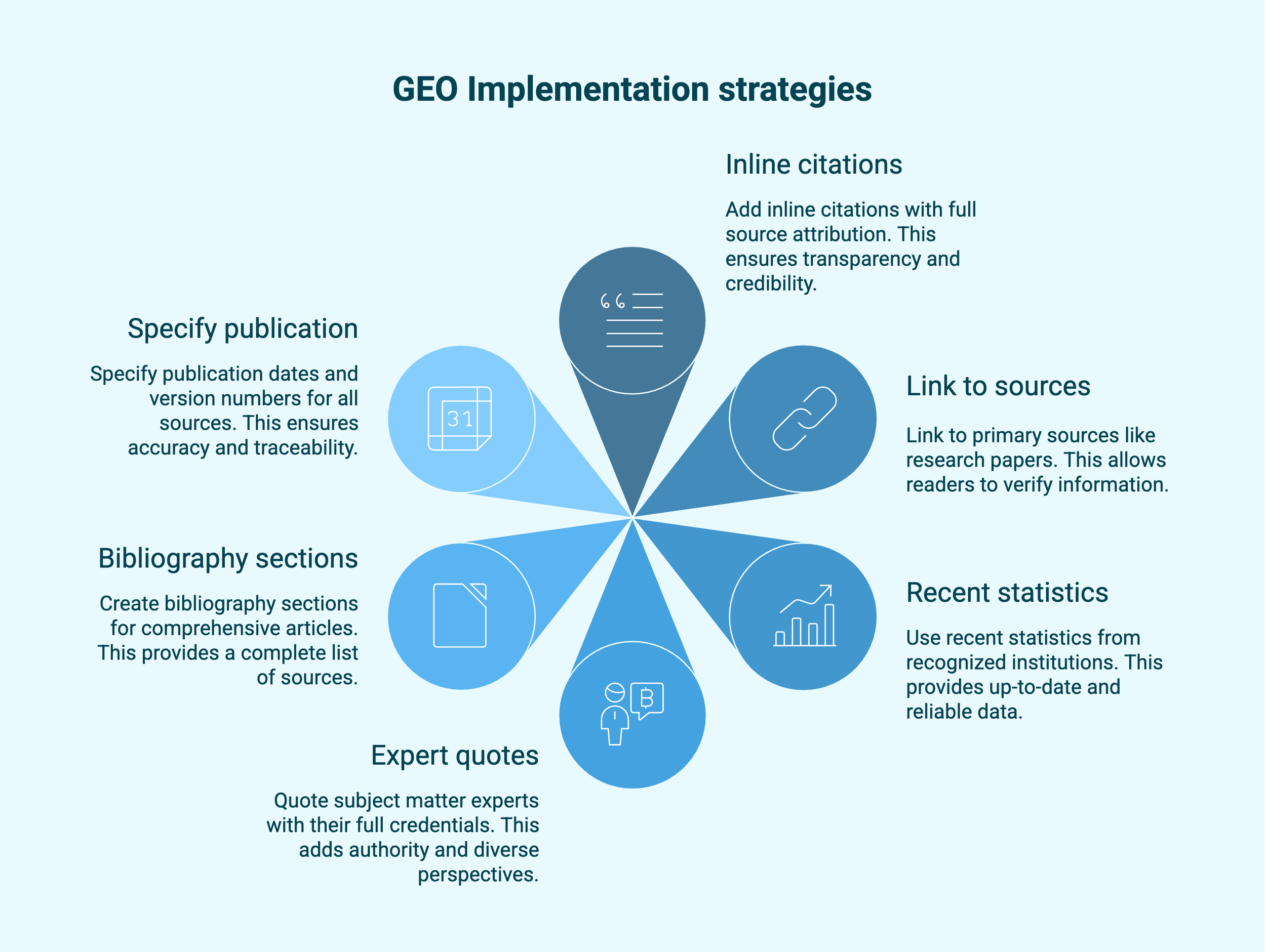 Success in GEO requires commitment to producing authoritative content that serves both AI systems and human readers. This means investing in expertise, maintaining accuracy, and building genuine authority in your field. The tactics may be new, but the principle is timeless: create content that truly deserves to be cited as a trusted source.